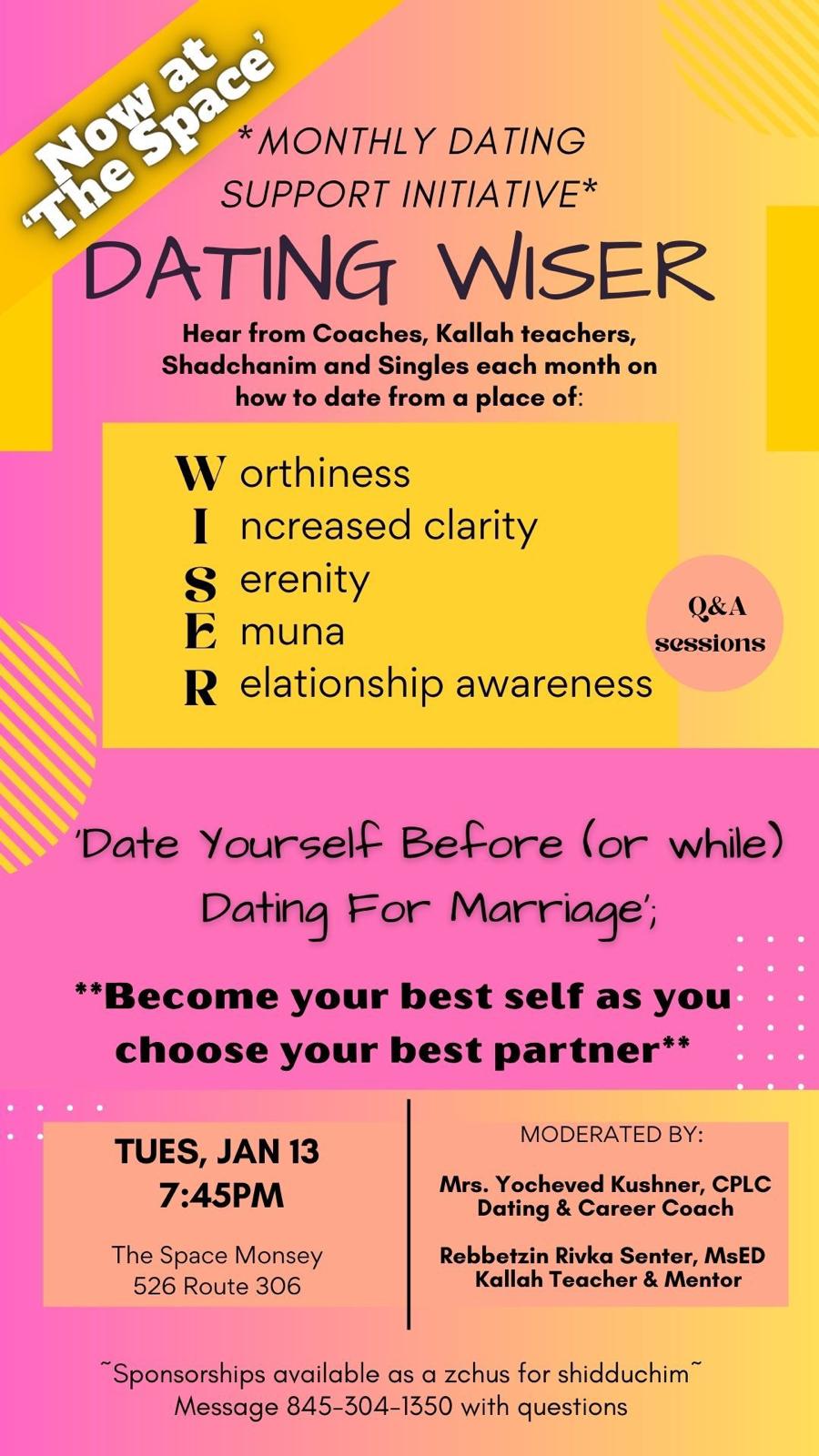 A monthly program focused on dating from a place of “WISER” (Worthiness, Increased clarity, Serenity, Emuna, and Relationship awareness). The theme of this session is “Date Yourself Before (or while) […]
