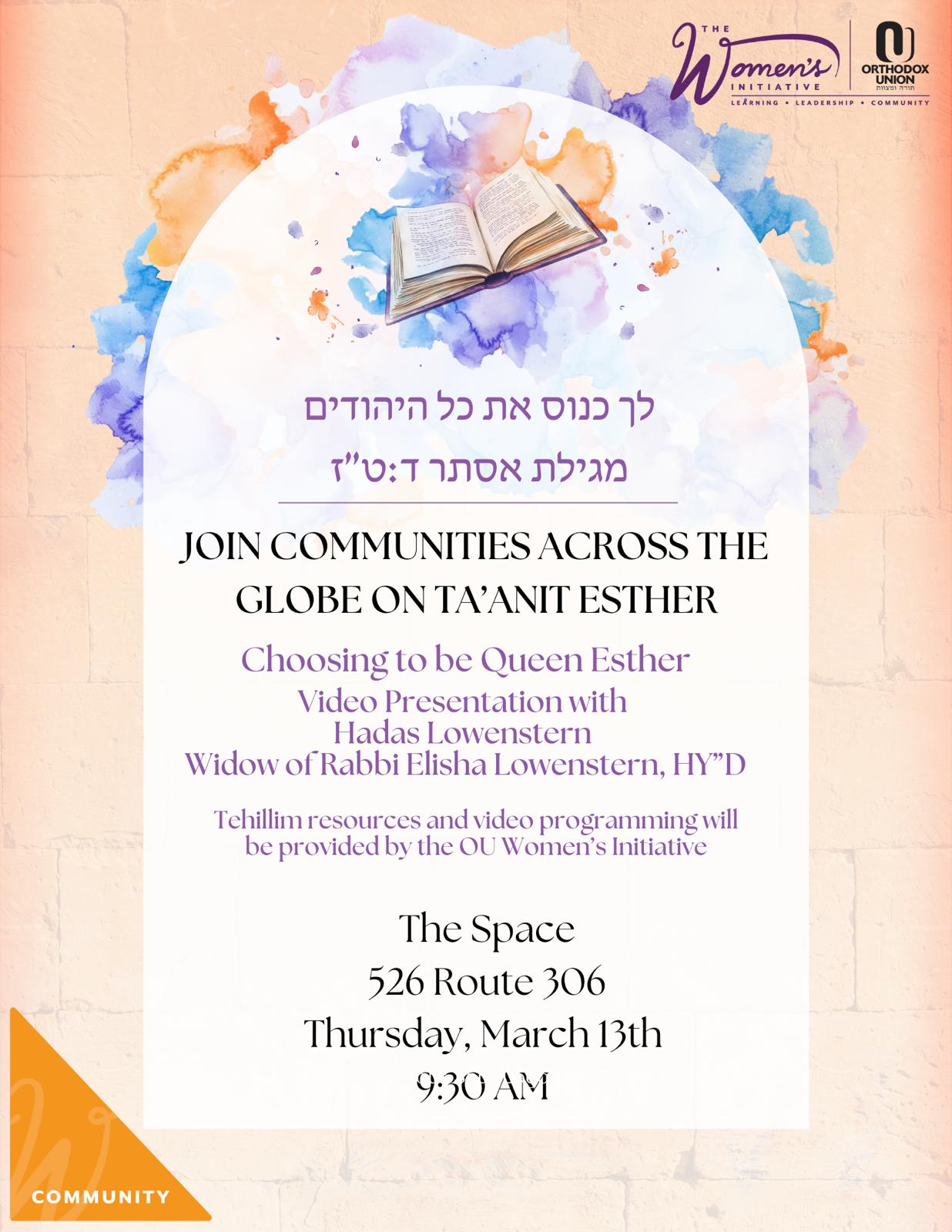 Join communities across the globe on Taanis Esther, video presentation with Hadas Lowenstern, widow of R’ Elisha Lowenstern HY”D.