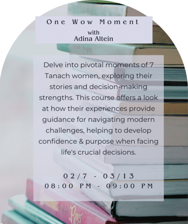 Delve into pivotal moments of 7 Tanach women, exploring their stories and decision-making strengths. This course offers a look at how their experiences provide guidance for navigating modern challenges, helping to develop confidence & purpose when facing life’s crucial decisions.